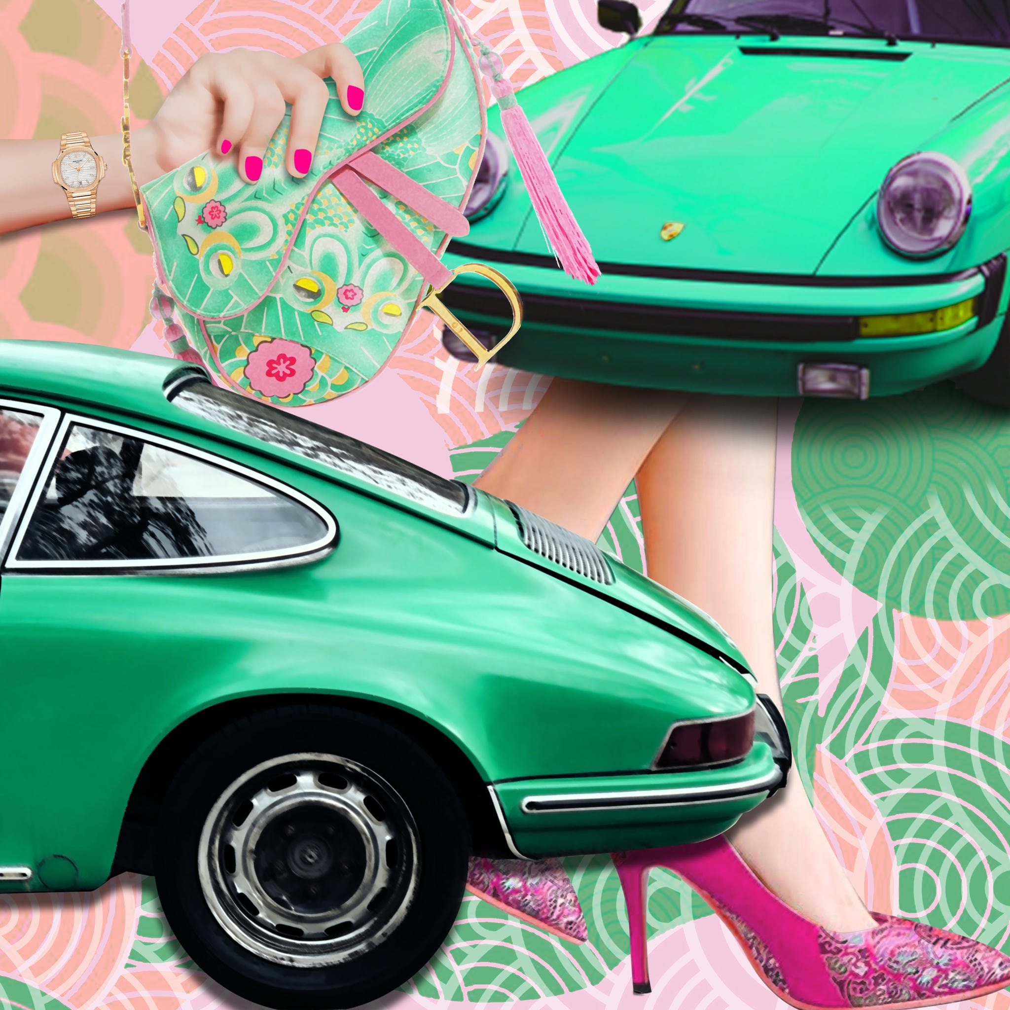 Drive Pop is where horsepower meets high heels. Blending the sleek lines of Porsche, Ferrari, and Lamborghini with bold Pop Art colour and playful sensuality, the collection reimagines supercars as icons of both speed and style. By pairing chrome curves with elegant legs and shoes, each piece celebrates desire, motion, and the thrill of living fast — in art and in life.